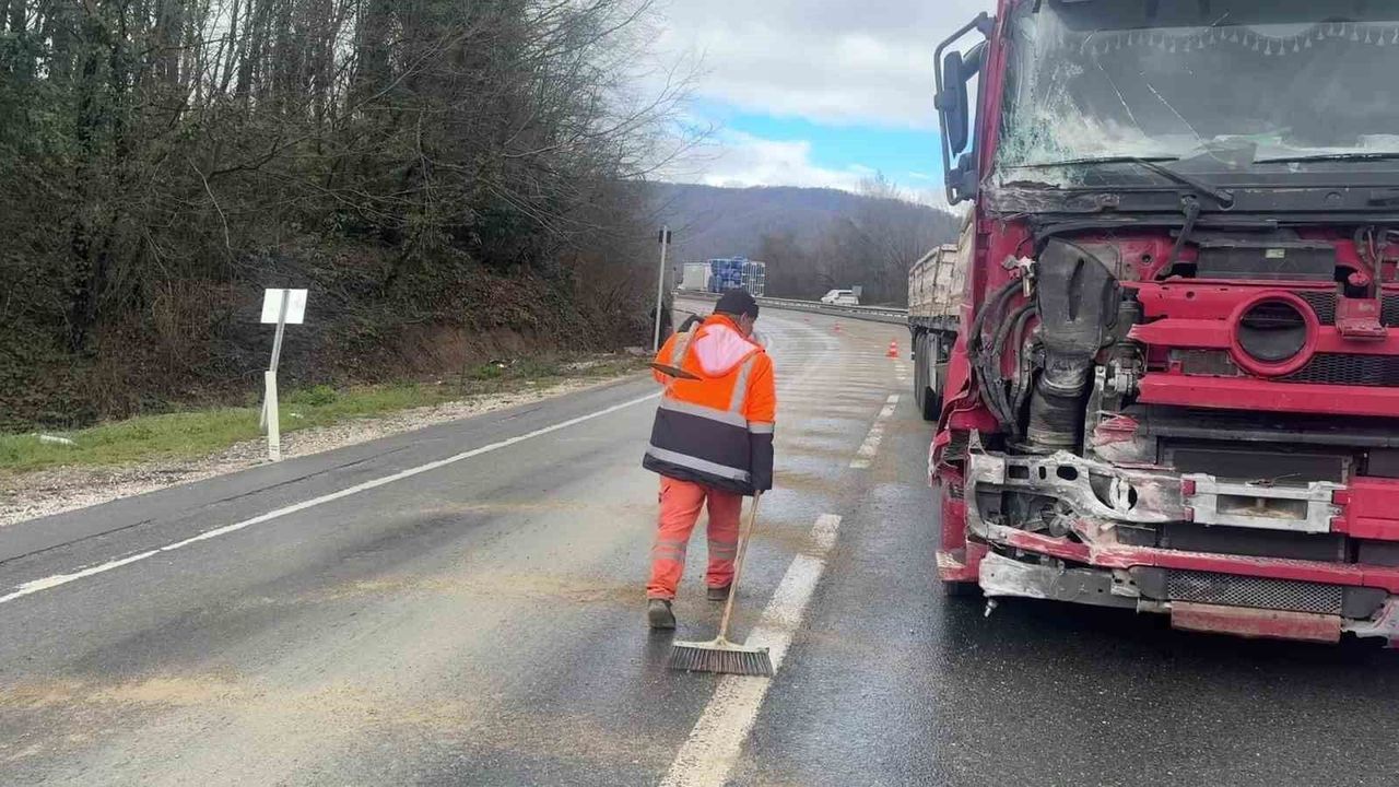 Düzce-Akçakoca D-655 kara yolunda sağanak yağışın ardından kayganlaşan zeminde kontrolden çıkarak bariyerlere çarpan tır yolu trafiğe kapattı. Makas atarak durabilen tırın hafif yaralanan sürücüsüne olay yerinde müdahale edilirken, kara yolunda uzun araç kuyrukları oluştu.