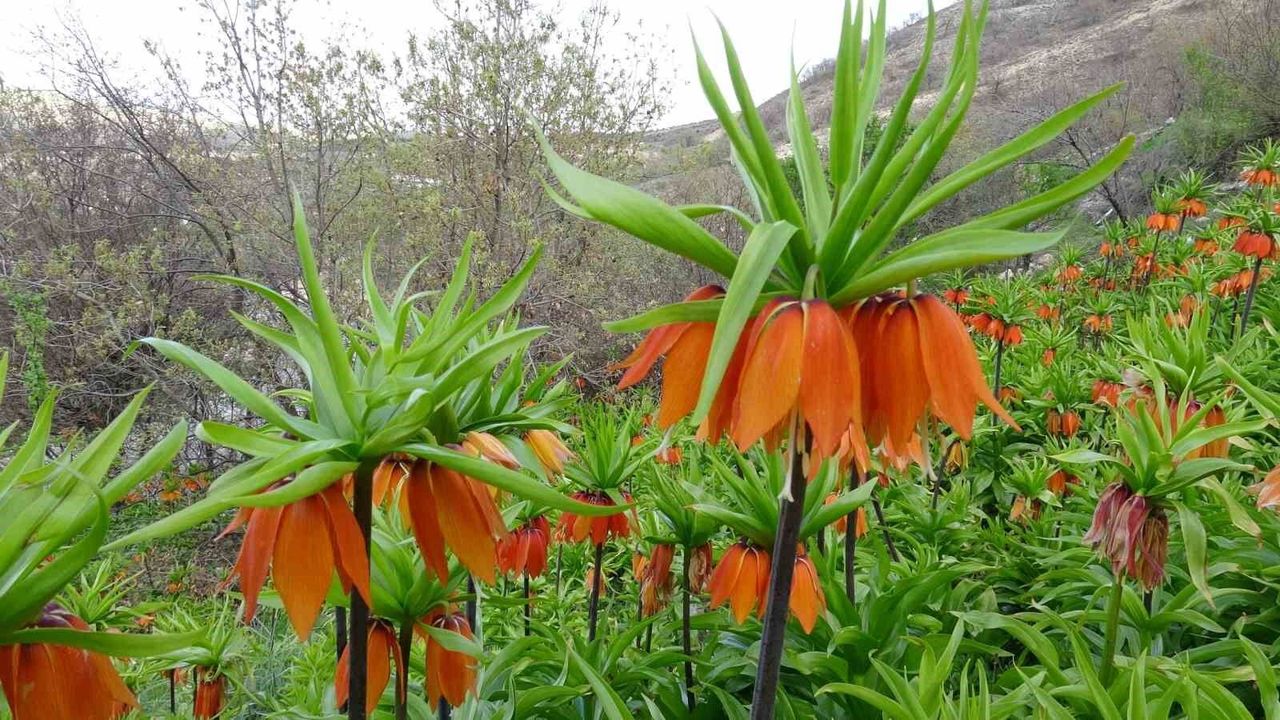 Malatya'nın Akçadağ ilçesinde baharın gelişiyle birlikte açan ters laleler doğaya renk kattı.