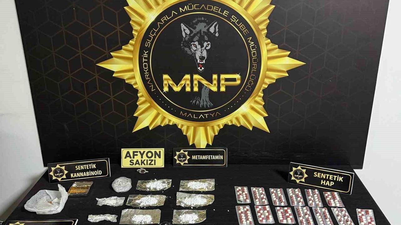 Malatya'da İl Emniyet Müdürlüğü Narkotik Suçlarla Mücadele Şube Müdürlüğü ekiplerince sokak satıcılarına yönelik operasyon düzenlendi. Belirlenen 7 şüpheli şahsa ait adreslerde yapılan aramalarda 472 adet sentetik ecza, 60 gram metamfetamin, 8 gram sentetik kannabinoid, 3 gram esrar, 2 gram afyon sakızı ile 1 adet ruhsatsız tabanca ele geçirildi.