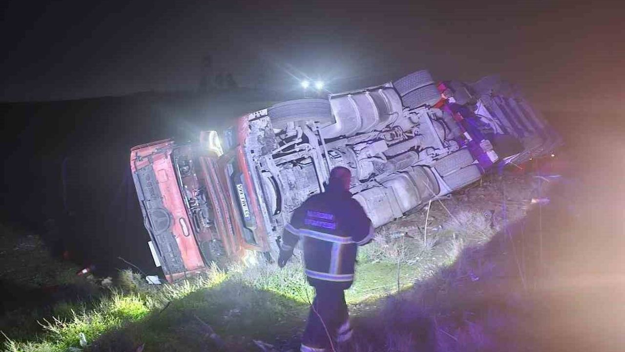 Mardin'in Nusaybin ilçesinde tırın devrilmesi sonucu meydana gelen kazada sürücü yaralandı.