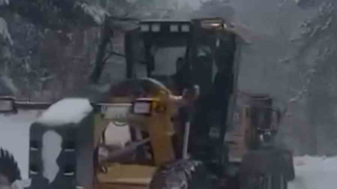 Bolu'nun Mengen ilçesinde etkili olan kar yağışı sonrası köy yollarında ulaşımın aksamaması için çalışma yürütülüyor.