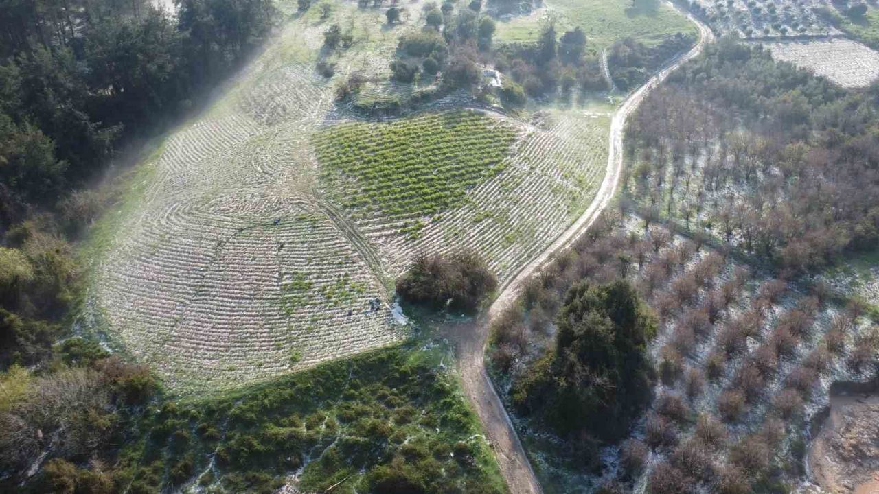 Türkiye'nin önemli tarım merkezlerinden Mersin'in Erdemli ilçesinde dolu yağışı etkili oldu. İlçe merkezinde 10 kilometre uzaklıktaki Kösbucağı ve Dağlı mahalleleri başta olmak üzere 300 rakım üzerinde etkili olan misket büyüklüğündeki dolu limon, avokado ve sebze bahçelerine zarar verdi. Dolu nedeniyle bahçeler, orman ve yollar da beyaza büründü. Dolu yağışının ardından bölgedeki durum dron ile havadan da görüntülendi.