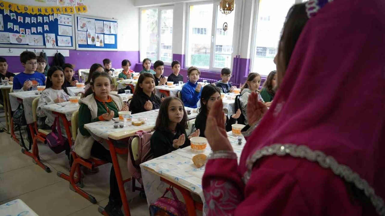 Samsun'da İlkadım İlkokulu öğrencileri, 'Maarifin Kalbinde Ramazan' etkinliği kapsamında 'tekne orucu' tutmanın mutluluğunu yaşadı.