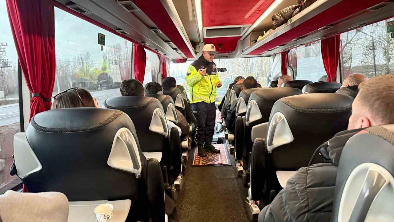 Muş İl Jandarma Komutanlığı Trafik Jandarması ekipleri, şehirlerarası otobüslerin karıştığı kazalardaki can kayıplarını azaltmak amacıyla Muş-Ağrı devlet yolunda denetim ve bilgilendirme çalışması yaptı.