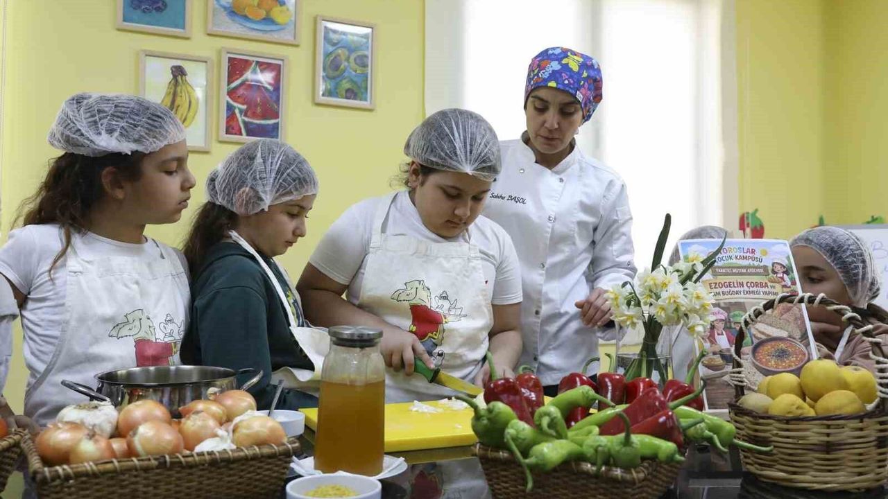 Mersin Büyükşehir Belediyesi tarafından Toroslar Çocuk Kampüsünde düzenlenen Mutfak Atölyesinde çocuklar, hem geleneksel Türk mutfağını hem de dünya mutfağını tanıma fırsatı bulurken, sağlıklı beslenmenin püf noktalarını da öğreniyor.
