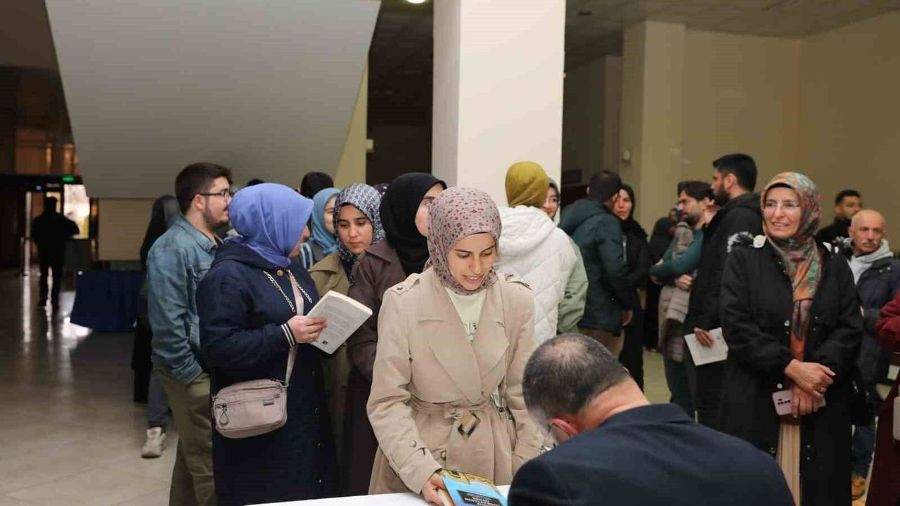 Konferansın ardından fuaye alanında okurlarıyla bir araya gelen yazar, 'Kayıp Coğrafya'nın İzinde: Doğu Türkistan' adlı kitabını imzaladı.