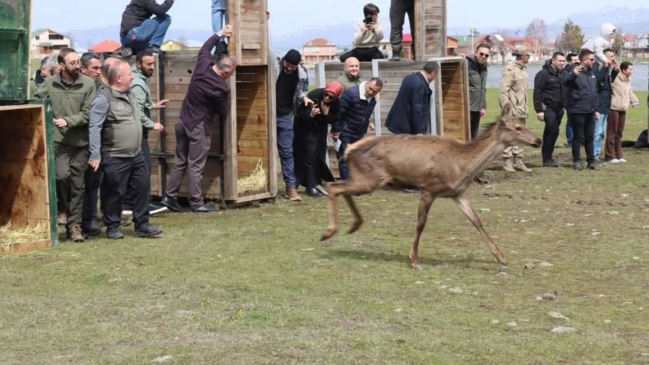 Ordu'nun Mesudiye ilçesinde doğal hayatın korunması ve yaban hayvanı popülasyonunun artırılması amacıyla doğaya 16 kızıl geyik bırakıldı.
