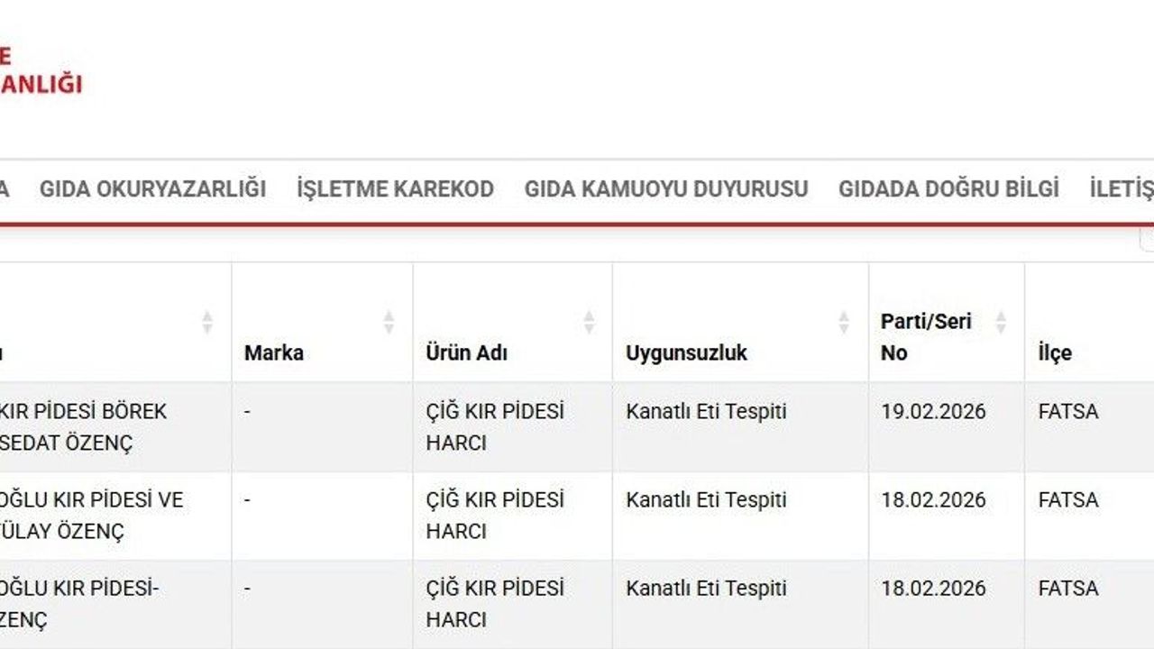 2 Nisan tarihinde yayımlanan listede, Fatsa'da faaliyet gösteren 'Kervan Kır Pidesi Börek Salonu' ile 'Candaroğlu Kır Pidesi ve Börek Salonu' isimli işletmeler de yer aldı. Denetimler kapsamında bu işletmelerden alınan çiğ kır pidesi harcı örneklerinde kanatlı eti bulunduğu belirlendi.