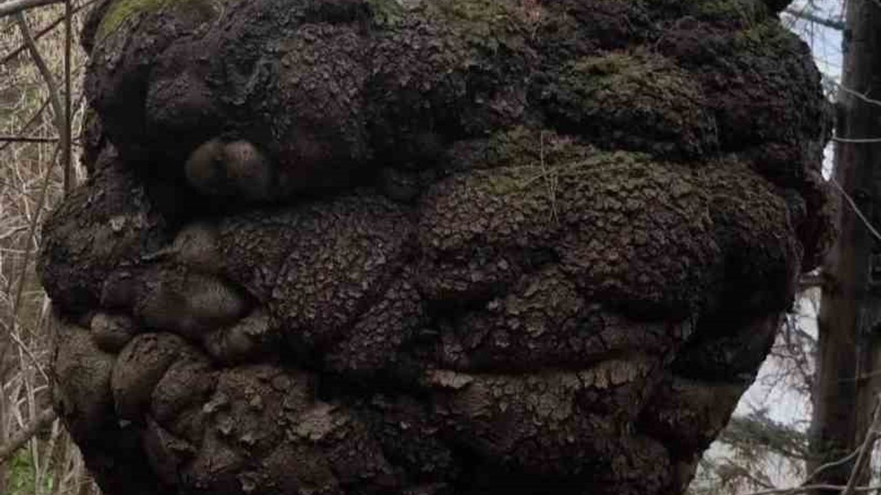 Ağacın bakteri, mantar veya fiziksel yaralanmalara karşı kendini korumak için hücrelerini kontrolsüzce büyütmesiyle oluşan bu kütle, Araklı'da bulunan bu örnekte devasa boyutlara ulaşmış durumda.