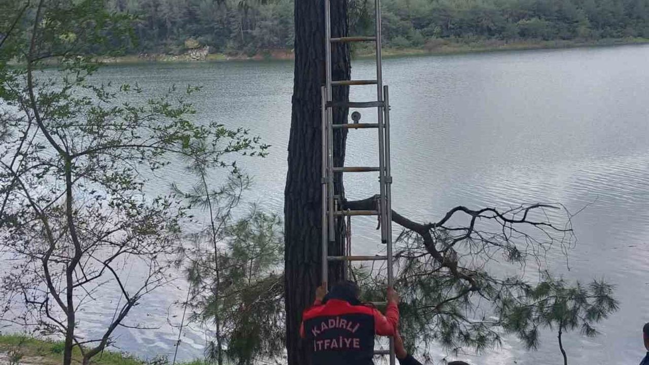 Osmaniye'nin Kadirli ilçesinde ağaca takılan karga, itfaiye ekiplerinin müdahalesiyle kurtarılarak yeniden doğaya salındı.