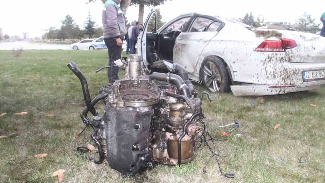 Konya'nın Beyşehir ilçesinde kontrolden çıkan otomobil, kavşakta devrildi. Ortalığın adeta savaş alanına döndüğü kazada sürücü yaralandı.
