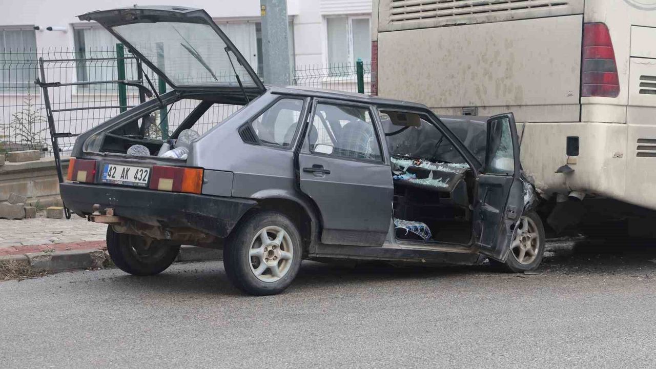 Konya'da otomobilin park halindeki otobüse çarpması sonucu 1 kişi yaralandı.