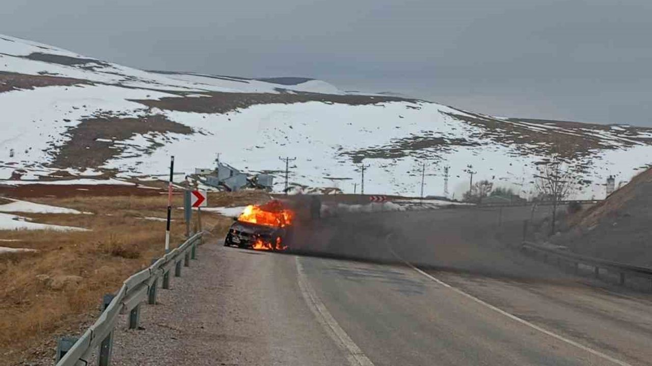 Sivas'ta seyir halindeki bir otomobil motor kısmından alev aldı. Alevlerin sardığı otomobilde maddi hasar oluştu.