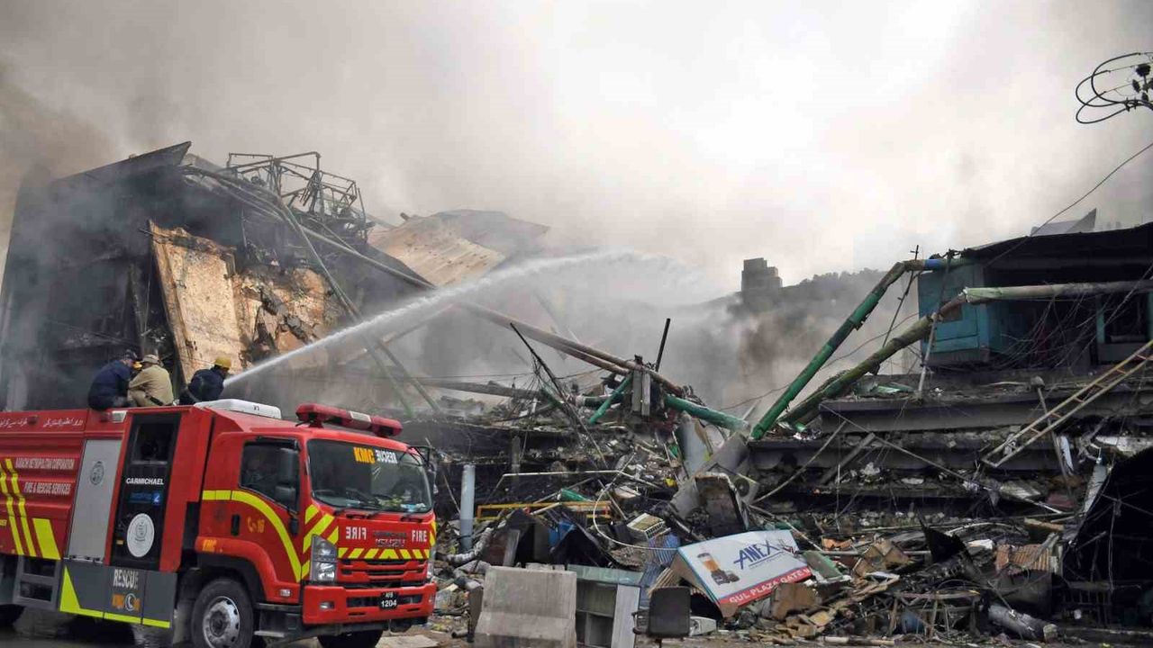 Pakistan'ın Karaçi kentindeki Gul Plaza adlı AVM'de dün yerel saatle 22.00 sıralarında başlayan yangını söndürme çalışmaları devam ederken, AVM'de can pazarı yaşandı. Yangından kaçmaya çalışan 2 kişi, binanın cephesindeki klimaların motorlarına kurulan merdivenlerden inerken dengelerini kaybederek metrelerce yüksekten yere çakıldı. Yangında 1'i itfaiyeci olmak üzere şu ana kadar 6 kişi hayatını kaybederken, 30 kişi de yaralandı. Yetkililer, 58 kişiden ise hala haber alınamadığını açıkladı. Yaklaşık bin 200 mağazanın bulunduğu AVM'nin bir kısmı yangın nedeniyle çöktü.