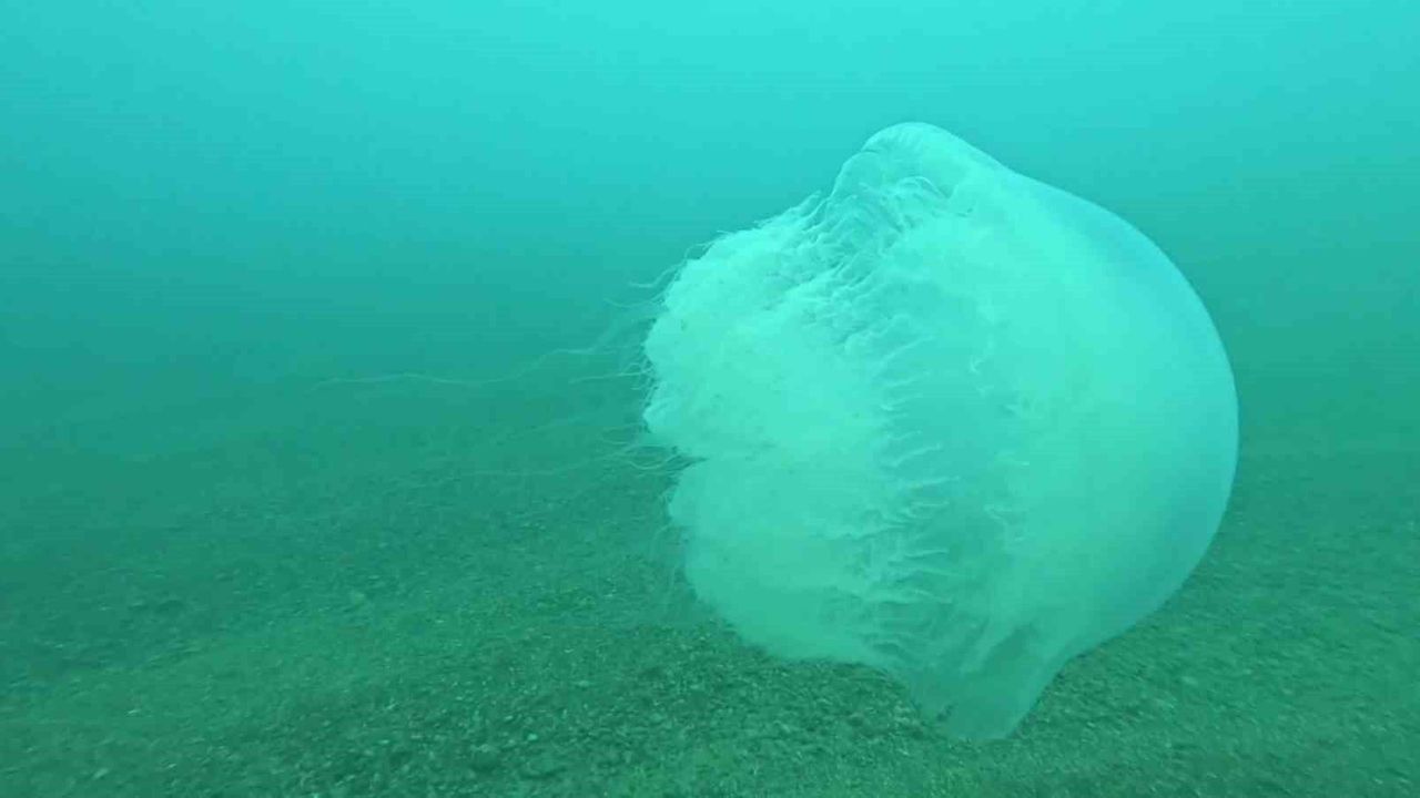 Şuan görülen türün Kızıldeniz'den Akdeniz'e geçen tehlikeli ve büyük denizanaları olduğunu belirten Gökoğlu, '10 kg civarında ağırlığı. Düdüklü tenceresinden biraz büyük vaziyette diye düşünelim. Bir ila bir buçuk metre uzantıları var arkasında. Yakıcı zehri olan uzantıları var' diye konuştu.