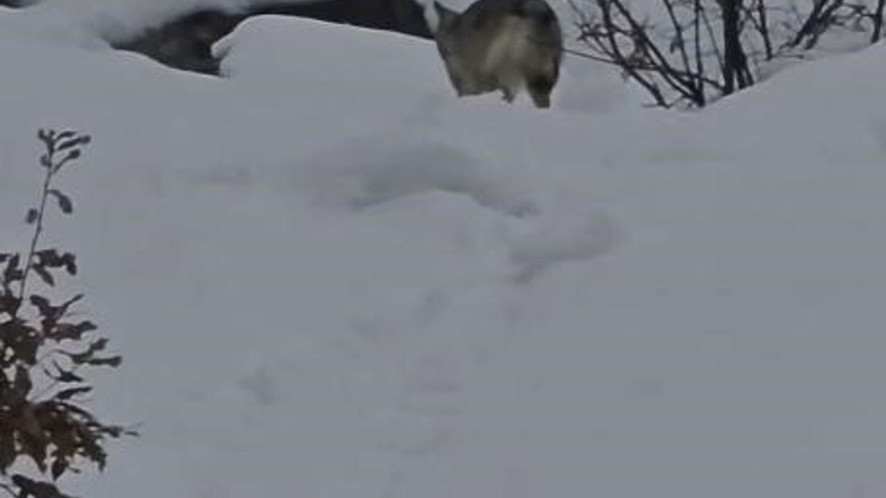 Tunceli'nin Pülümür Vadisi'nde, karla kaplı dağlık alanda yiyecek arayan bir kurt görüntülendi. Doğa Koruma görevlisi Murat Özel tarafından kaydedilen görüntülerde, kurdun bir süre bölgede dolaştığı görüldü. Zorlu kış şartlarının hakim olduğu vadide yiyecek arayışını sürdüren kurt, bir süre sonra gözden kayboldu.