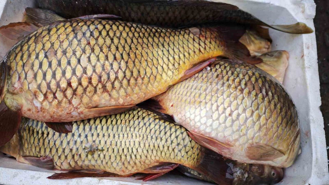 Bitlis'in Ahlat ilçesinde satışa sunulan sazan balıkları, Ramazan ayında vatandaşlardan yoğun ilgi görüyor.