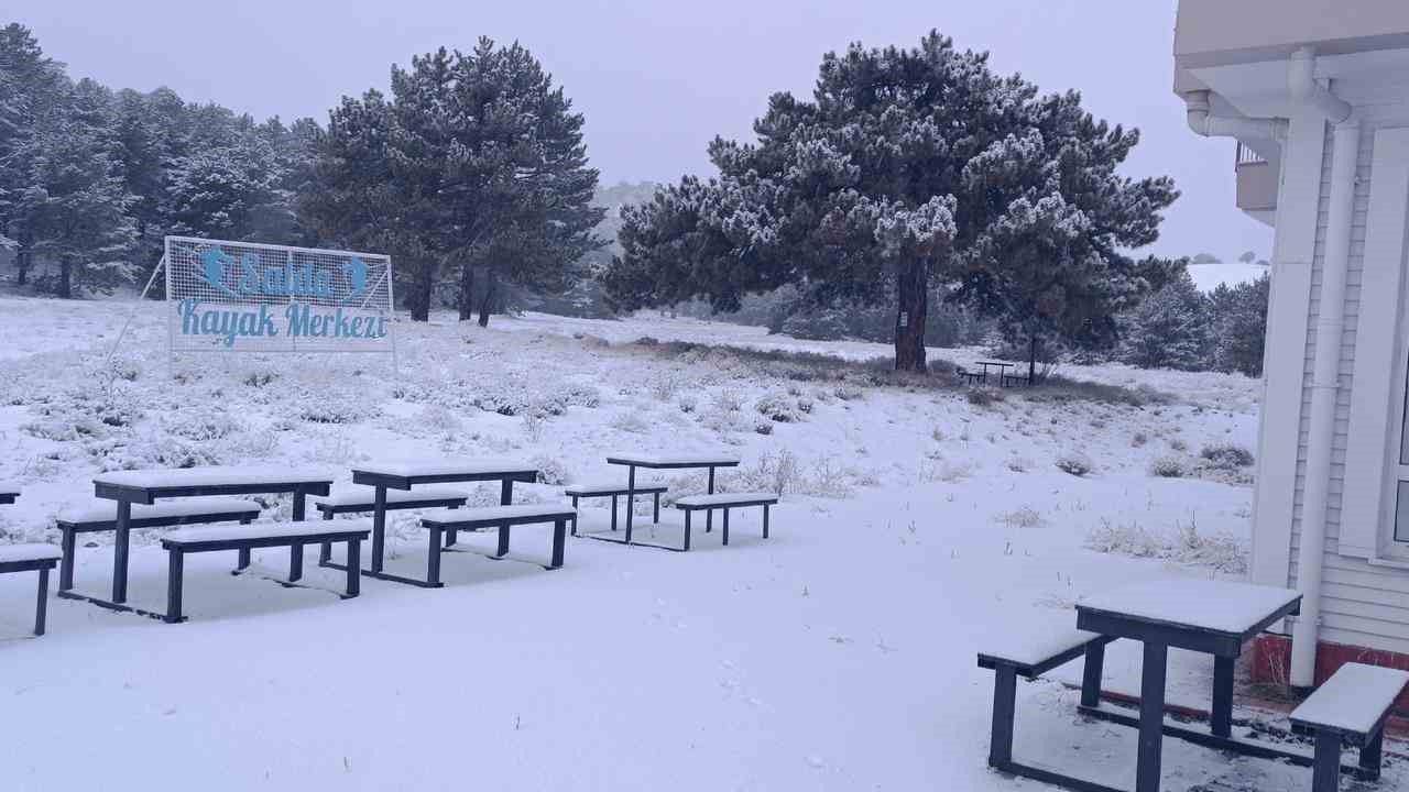 Burdur'un Yeşilova ilçesindeki Salda Kayak Merkezi'ne mevsimin ilk karı yağdı.
