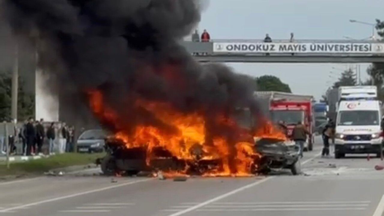 Samsun'un Çarşamba ilçesinde 5 aracın karıştığı zincirleme trafik kazasında 4 kişi yaralandı. Kazanın ardından alev alan 3 otomobil tamamen yanarak hurdaya döndü.