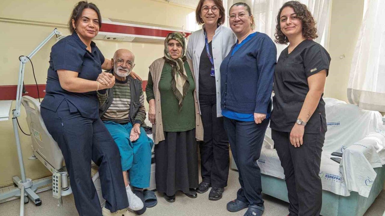 Diyabet hastası 83 yaşındaki Mustafa Kafa, hastalığına bağlı diyabetik ayak enfeksiyonu nedeniyle Artvin'de çeşitli hastanelere başvurdu. Kafa'ya diyabetik ayak ampütasyonu önerilmesine rağmen, farklı bir tedavi umuduyla İzmir Büyükşehir Belediyesi Eşrefpaşa Hastanesi'ne geldi. Enfeksiyon, dahiliye, ortopedi ve plastik cerrahi birimlerinin ortak çalışmasıyla 90 gün boyunca tedavi edilen Kafa, sağlığına kavuşarak taburcu edildi. Kafa, 'Ayağım perişan durumdaydı. Başka hastanelerde kesileceğini söylediler. Burada 'bu ayağı kurtarırız' dediler ve başardılar. Hepsine çok teşekkür ediyorum. Şu an iyiyim, ayağıma çocuk bakar gibi bakmamı söylediler, biz de buna uyacağız' ifadelerini kullandı. Kafa, kendisiyle ilgilenen hekim ve hemşirelerle birlikte Artvin'de fındık toplayacağının sözünü verdi.