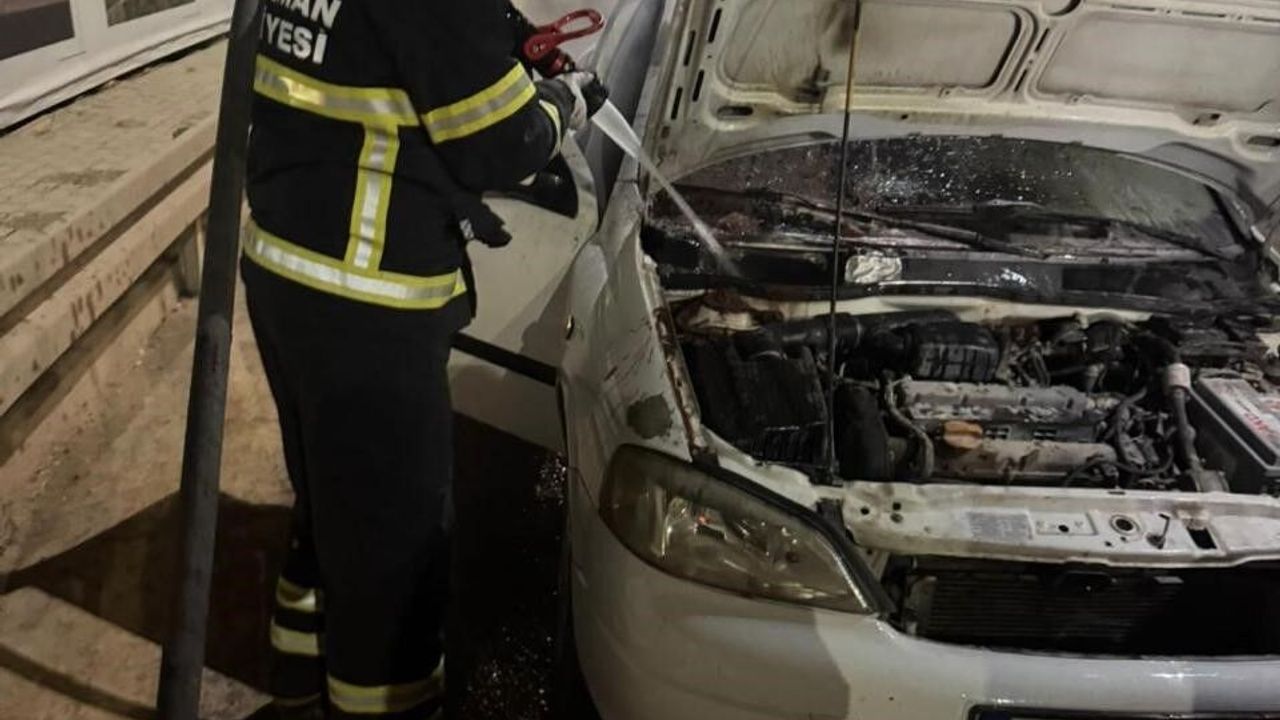 Adıyaman'da seyir halindeki bir otomobil alev alarak yandı.