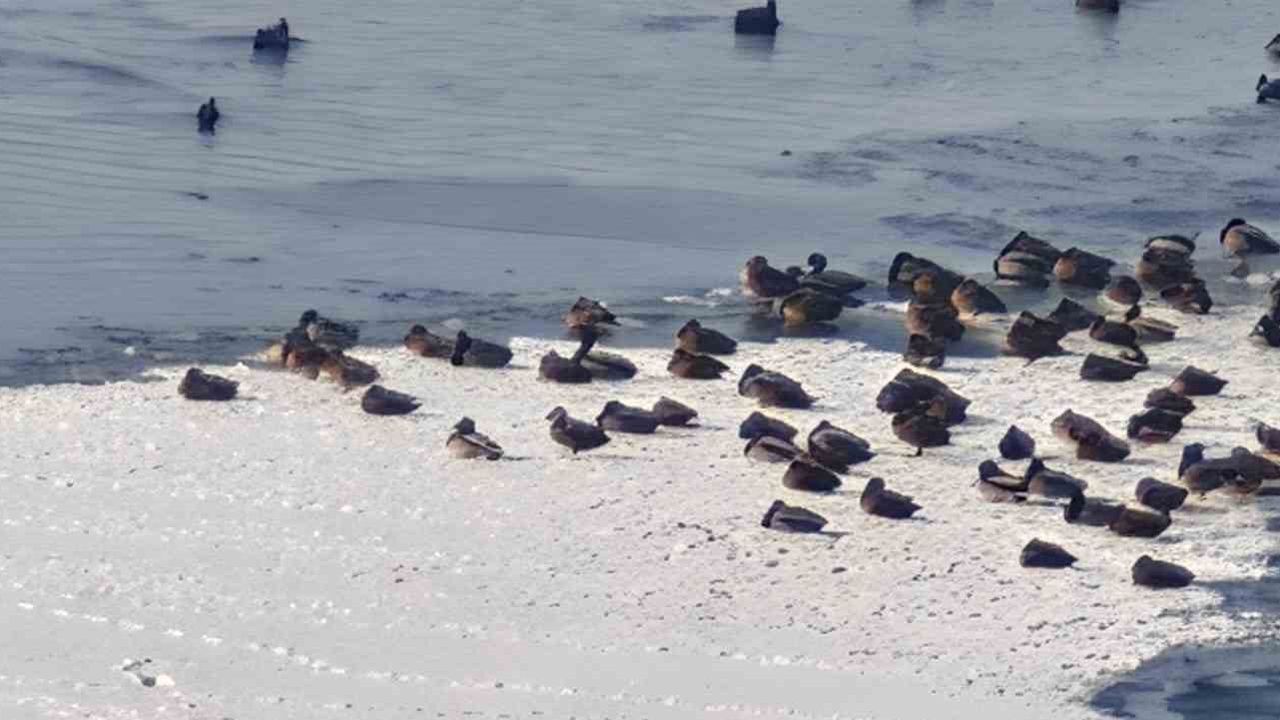 Göçmen kuşların önemli uğrak ve konaklama alanlarından biri olan HES Göleti aşırı soğuk nedeniyle donarken, kuşlar yaşamlarını sürdürebilmek için gölete akan suyun oluşturduğu küçük buzsuz alanlarda yiyecek arıyor. Zor şartlara rağmen hayatta kalmaya çalışan kuşların bu mücadelesi, soğuk havanın yaban hayatı üzerindeki etkisini gözler önüne serdi.
