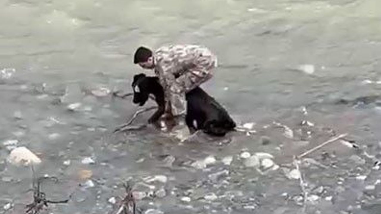 Siirt'in Baykan ilçesinde dere yatağına düşen bir buzağı, polis ekiplerinin hızlı müdahalesiyle kurtarıldı.