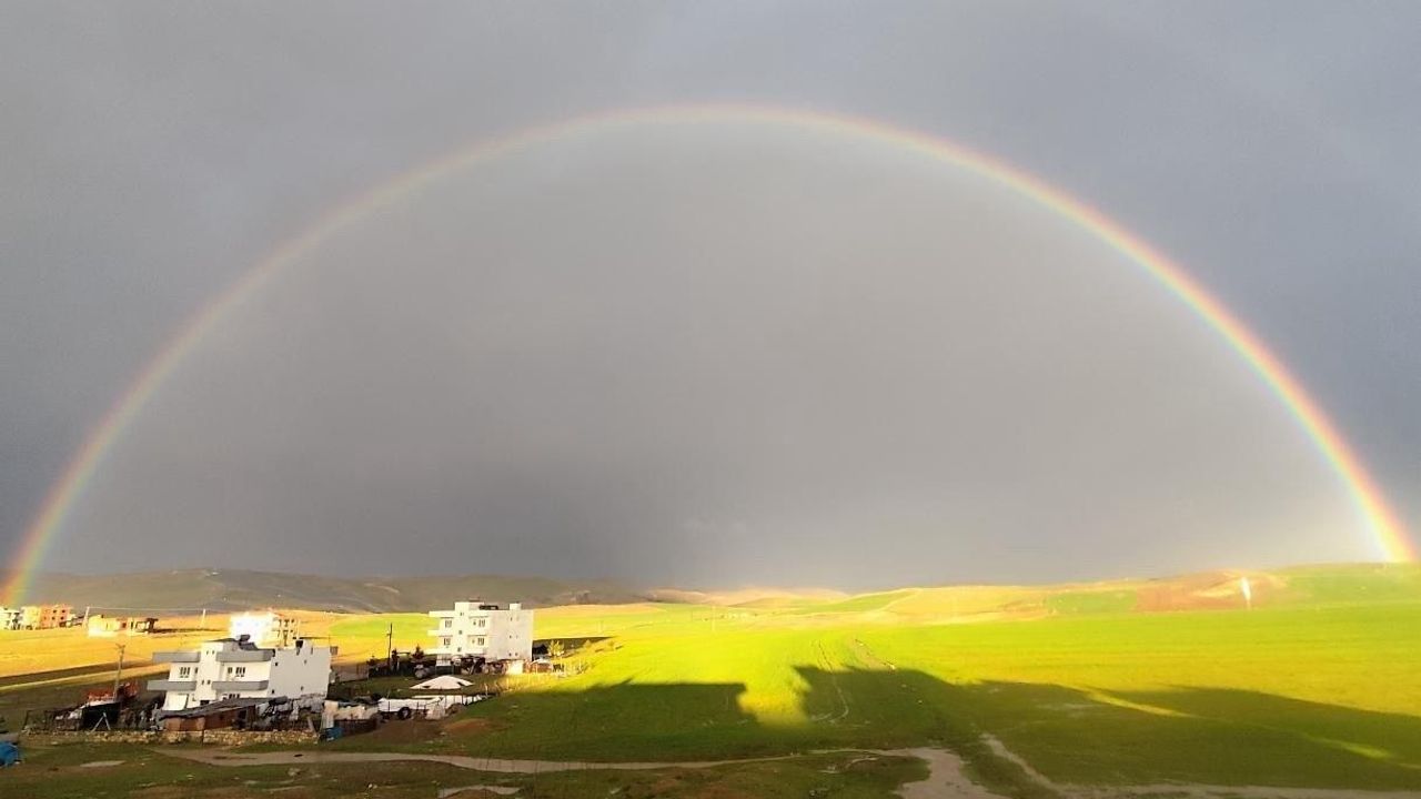Siirt'in Kurtalan ilçesinde yağışın ardından ortaya çıkan gökkuşağı, görenleri hayran bıraktı.