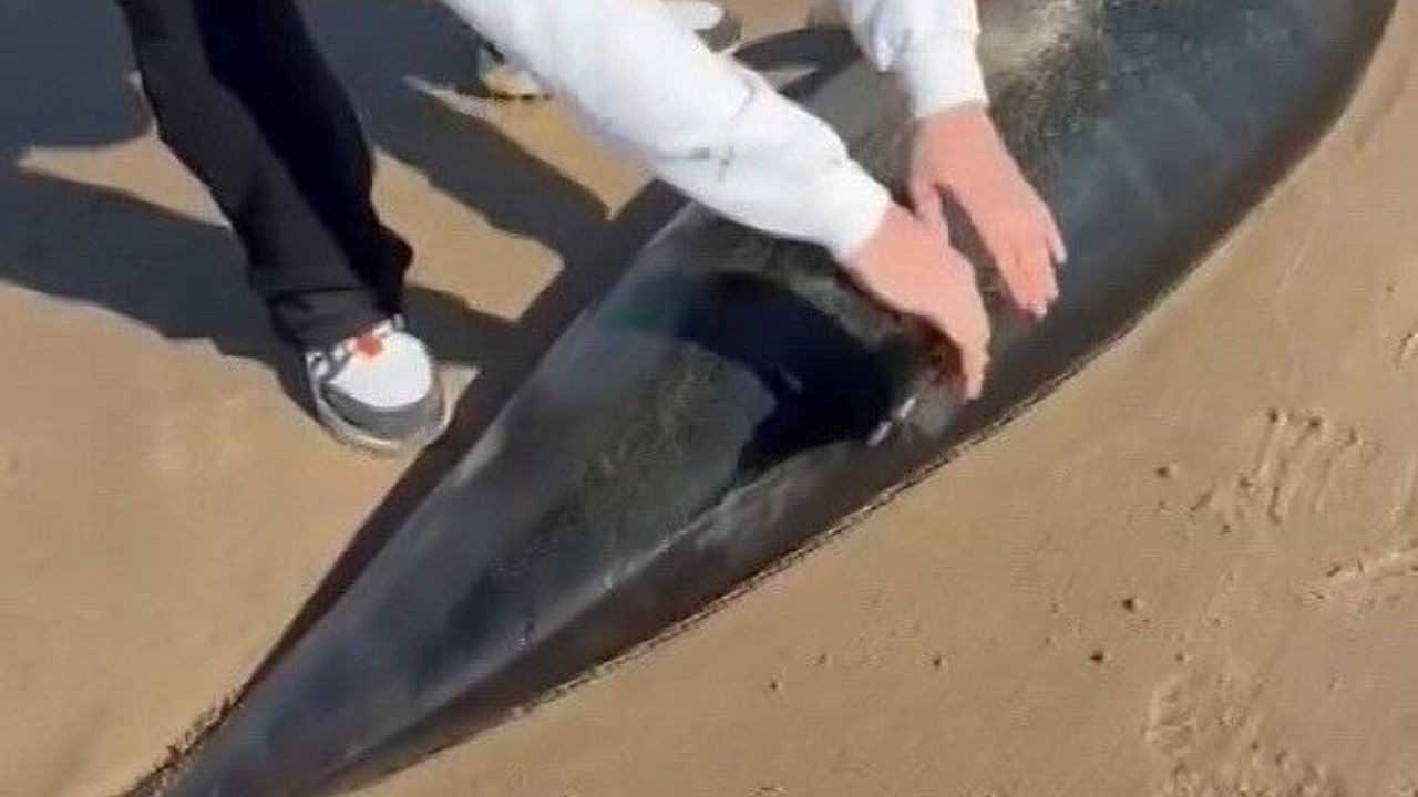 Şile'de yürüyüş yapan vatandaşlarca kıyıya vurmuş ölü yunus balığı bulundu.