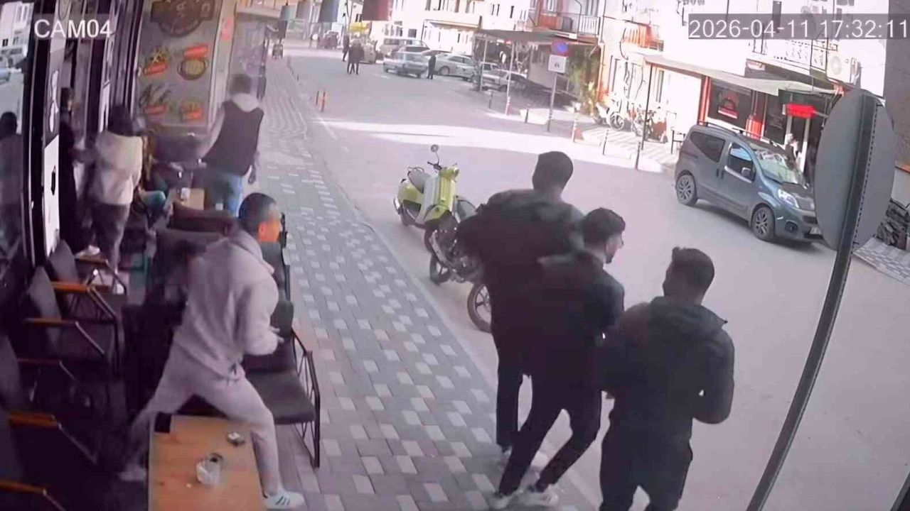 Hisarcık ilçesinde de hissedilen kısa süreli deprem anında Güner Önce Caddesindeki kafenin önünde oturan müşterilerin kaçışmaları güvenlik kameralarına saniye saniye yansıdı.