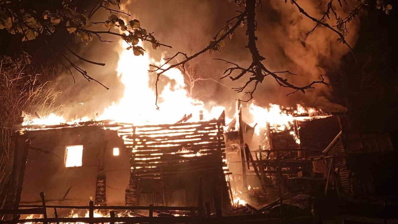 Sinop'un Erfelek ilçesinde çıkan yangında 2 katlı ev ahır ve ambar tamamen yanarak kullanılamaz hale geldi. Yangında bir eşek telef olurken, diğer hayvanlar son anda kurtarıldı.