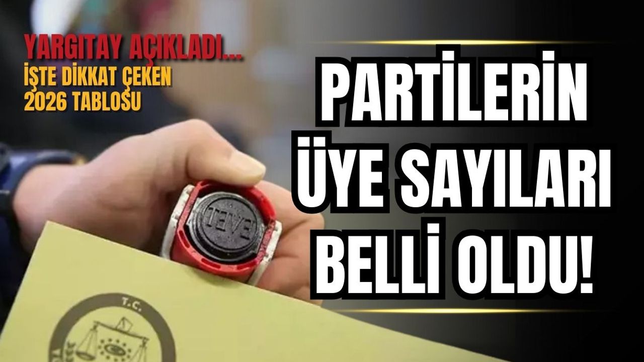 Yargıtay Cumhuriyet Başsavcılığının güncellediği kayıtlara göre, 188 siyasi partinin faaliyette olduğu Türkiye'de, AK Parti 11 milyon 543 bin 301 ile en fazla üyeye sahip siyasi parti konumunda bulunuyor.