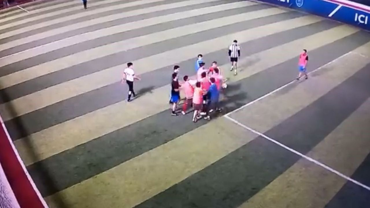 Bursa'nın Nilüfer ilçesinde halı saha maçı yapan iki takım arasında tartışma çıkınca, bazı oyuncular yumruk yumruğa birbirine girdi. O anlar kameraya yansıdı.