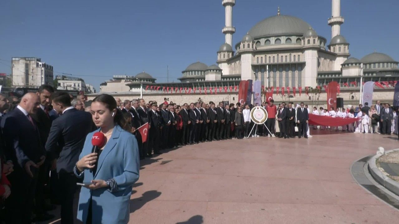 Bu yıl 106’ıncısı kutlanan 19 Mayıs Atatürk’ü Anma, Gençlik ve Spor Bayramı dolayısıyla İstanbul’daki Taksim Cumhuriyet Anıtı önünde resmi tören düzenlendi. Törene, 19 Mart operasyonları nedeniyle Silivri’de tutuklu bulunun İBB Başkanı ve CHP’nin Cumhurbaşkanı adayı Ekrem İmamoğlu’nu temsilen CHP İstanbul İl Başkanı Özgür Çelik, İBB Başkanvekili Nuri Aslan ve Beyoğlu Belediye Başkanı İnan Güney katıldı. Resmi tören; Mustafa Kemal Atatürk, silah arkadaşları ve tüm şehitler için yapılan saygı duruşunda bulunulması ve ardından İstiklal Marşı’nın okumasıyla başladı. Tören, İstanbul Gençlik ve Spor İl Müdürü Muhittin Özbay’ın anıta çelenk koymasıyla sona erdi. Resmi törenin bitiminin ardından, İBB’nin organize ettiği etkinliğe geçildi. Aslan, İBB çelengini, dakikalarca süren alkışlar altında Atatürk anıtına bıraktı. Üzerinde “Millet büyüktür” ibaresinin yer aldığı CHP çelengi de CHP İstanbul İl Gençlik Kolları Başkanı Erdem Kara tarafından anıta konuldu.