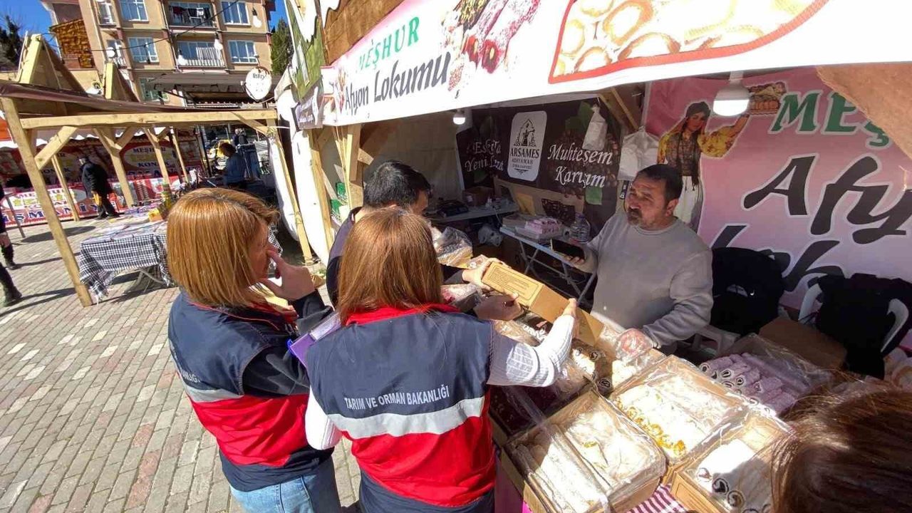 Fuar alanındaki seyyar tezgâh ve stantlarda yapılan kontrollerde hijyen kuralları, ürünlerin saklama şartları, etiket bilgileri ile son kullanma tarihleri incelendi.