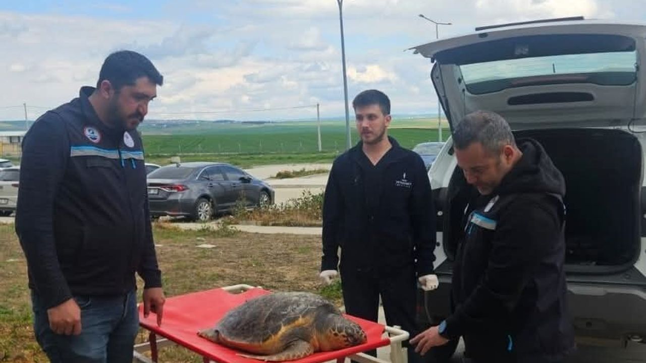 Tekirdağ'da balıkçılar tarafından ölü bulunan nesli koruma altındaki caretta caretta türü deniz kaplumbağası, ölüm nedeninin belirlenmesi için incelemeye alındı.