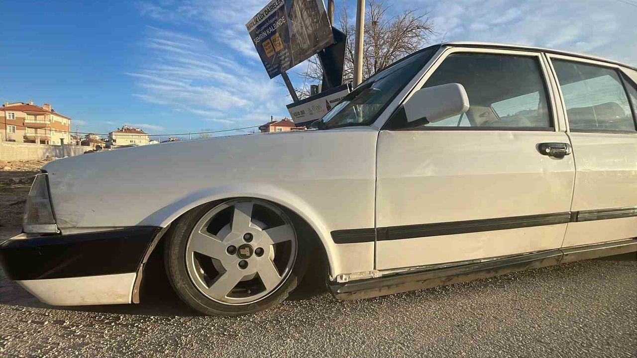 Karaman'da polisin uygulama noktasında durdurulan abartı egzozlu ve yere yakın Tofaş otomobil trafikten men edildi. Havalı süspansiyon kompresörü bozulunca yere yapışan otomobil uzun uğraşlar sonucu çekiciye yüklendi.