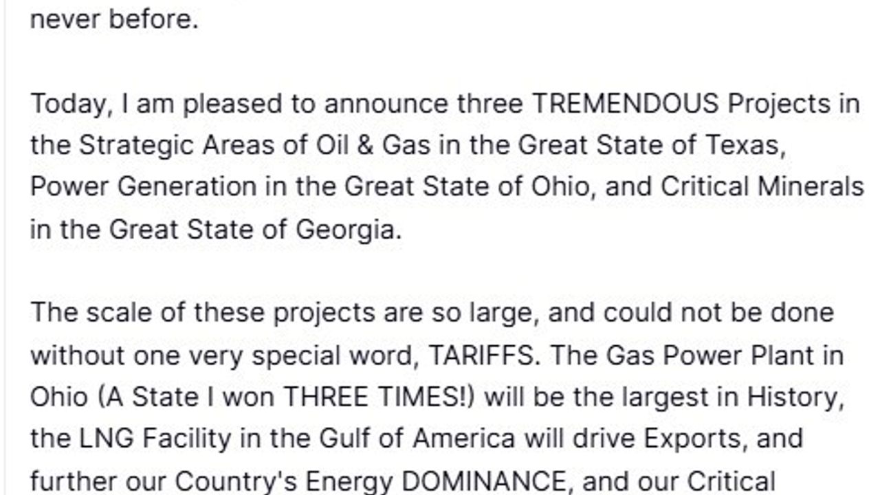 Bu büyük ölçekli projeleri uyguladığı gümrük tarifelerinin mümkün kıldığını savunan Trump, 'Seçimlerde 3 kez kazandığım bir eyalet olan Ohio'daki gaz santrali tarihin en büyüğü olacak, Amerika Körfezi'ndeki LNG (sıvılaştırılmış doğalgaz) tesisi ihracatı artıracak ve ülkemizin enerji hakimiyetini daha da ileriye taşıyacak ve kritik mineraller tesisimiz yabancı kaynaklara olan aptalca bağımlılığımıza son verecek' dedi. ABD'nin yeniden üretim yapmaya ve kazanmaya başlayan bir ülke konumuna geldiğine dikkat çeken Trump, 'Bu, ABD ve Japonya için çok heyecan verici ve tarihi bir dönem. Herkese tebrikler' açıklamasında bulundu.