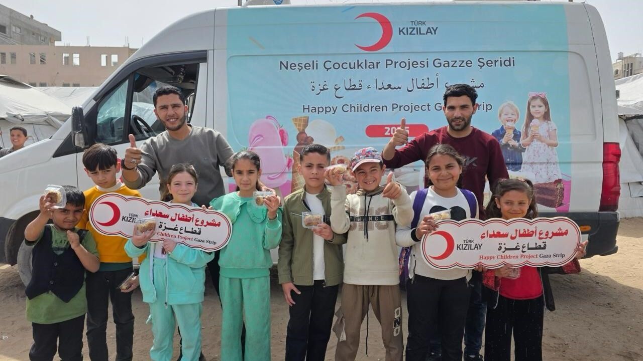 Gazze'de Türk Kızılay tarafından çocuklara yönelik yürütülen 'Neşeli Çocuklar Projesi' kapsamında günlük bin çocuğa şekerleme, tatlı ve atıştırmalık ulaştırılıyor. Dağıtımlar mobil araçla farklı noktalarda gerçekleştiriliyor. Proje, yalnızca ayni destek değil, çocuklara moral ve psikososyal destek sağlayan bir çalışma niteliği amaçlıyor.