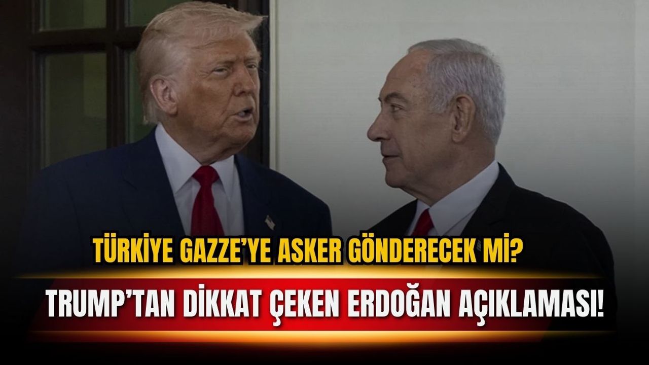 ABD Başkanı Donald Trump, "Türk askerlerinin Gazze'de konuşlandırılmasını bekliyor musunuz?" sorusuna, "Cumhurbaşkanı Erdoğan ile çok iyi bir ilişkim var ve bu konuyu konuşacağız. Eğer uygunsa, bence bu iyi bir şey, Netanyahu ile görüşeceğiz. Bu konuyu konuşacağız. Ama Türkiye harika bir ülke ve Erdoğan da mükemmel bir lider" dedi.