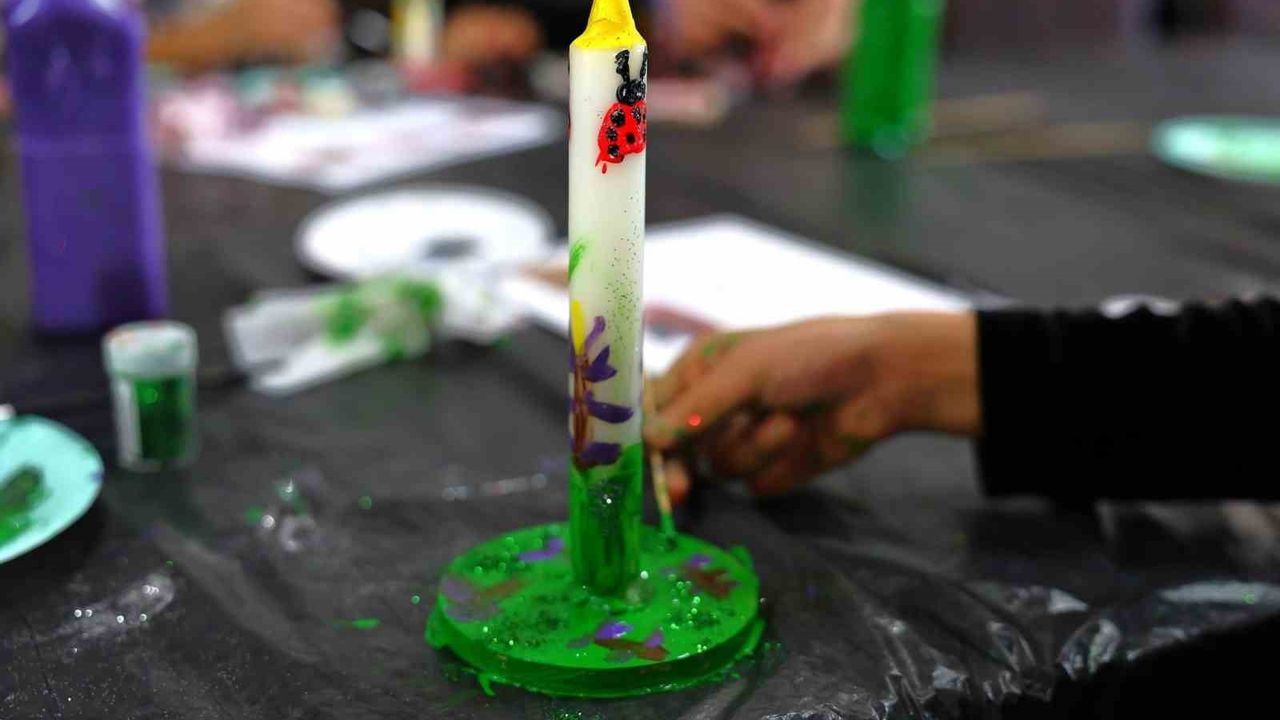 Kadın ve Aile Hizmetleri Müdürlüğü, yarıyıl tatiline giren çocukların aileleriyle kaliteli zaman geçirmesini sağlamak amacıyla 'Mum Boyama Atölyesi' düzenledi. 7-9 yaş aralığındaki çocukların ebeveynleriyle birlikte yer aldığı atölyede, katılımcılar renkli boyalar ve simler kullanarak birbirinden özgün mum tasarımları hazırladı. Gün boyu süren etkinlikte aileler, çocuklarıyla birlikte hem üretmenin hem de kaliteli zaman geçirmenin keyfini yaşadı.