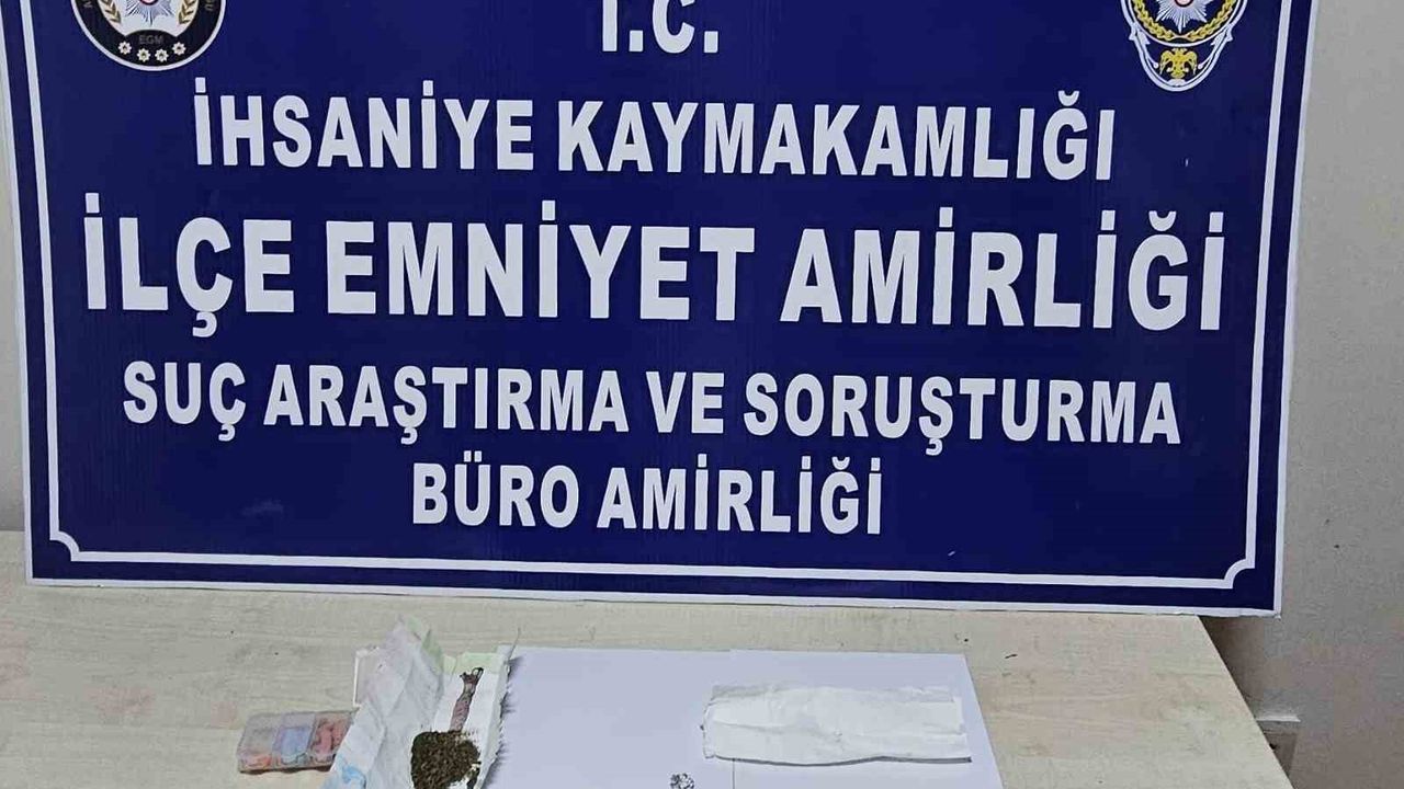 İhsaniye İlçe Emniyet Müdürlüğüne bağlı ekipler tarafından uyuşturucu ve uyarıcı madde satıcı ve kullanıcılarına yönelik yapılan çalışmada takibe alınan bir araç durdurularak arama yapıldı. Aramada
