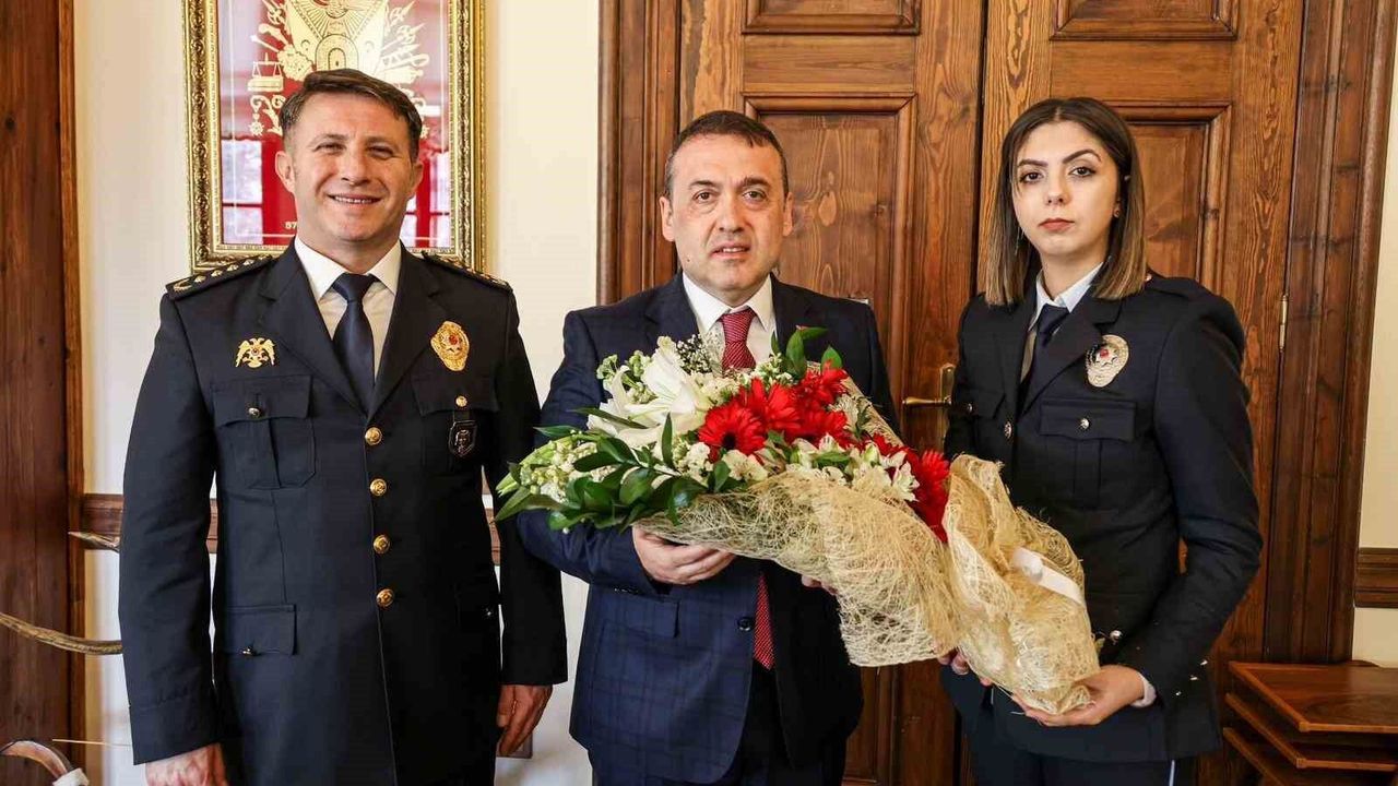İl Emniyet Müdürü Erdem Çağlar, Polis Meslek Eğitim Merkezi Müdürü Harun Çil ile beraberindeki teşkilat mensupları ve polis adayları, Vali Faik Oktay Sözer tarafından kabul edildi. Valilik makamında gerçekleşen kabulde, Türk Polis Teşkilatı'nın köklü geçmişi, kamu düzeninin sağlanmasındaki etkin rolü ve toplum huzuruna sunduğu katkılar ele alındı. Vali Sözer, milletimizin huzur ve güvenliği için büyük bir özveriyle görev yapan emniyet teşkilatının çalışmalarını takdirle karşıladığını ifade etti.