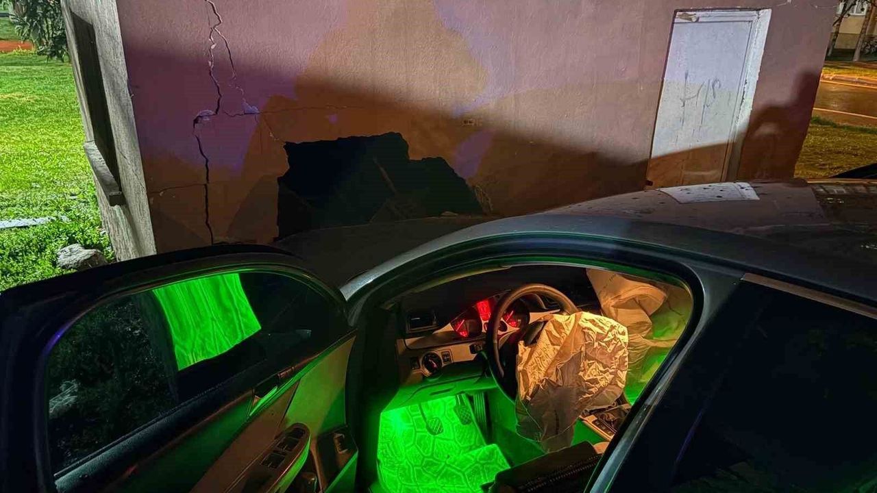Kayseri'nin Melikgazi ilçesinde yağışlı havada kontrolden çıkan otomobil, parka girerek temizlik malzemelerinin bulunduğu depoya çarptı. Kazada deponun duvarı yıkılırken, araç hasar gördü.