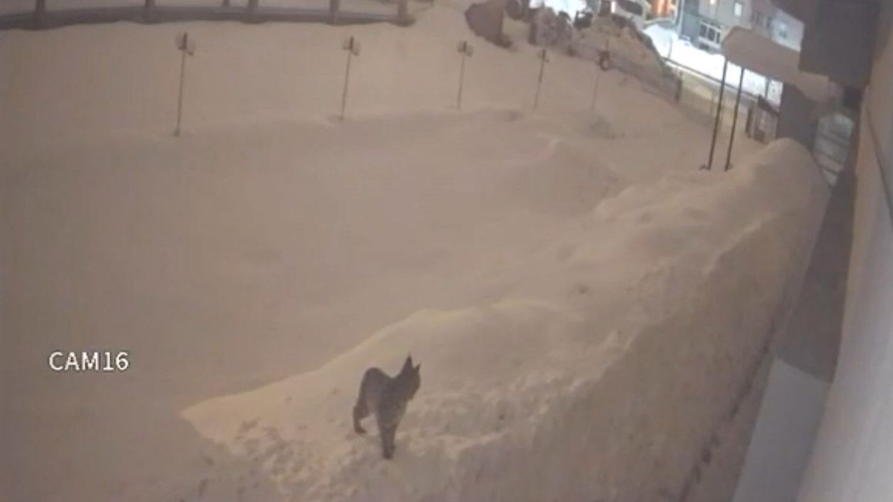 Hakkari'nin Yüksekova ilçesinde nesli tükenme tehlikesiyle karşı karşıya olan bir vaşak, düğün salonunun bahçesinde dolaşırken güvenlik kameralarınca kaydedildi.