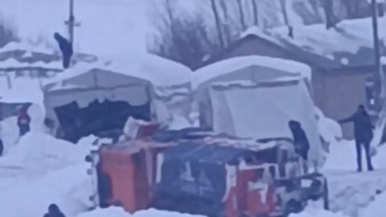 Hakkari'nin Yüksekova ilçesinde karla mücadele aracı, çalışma yaptığı sırada devrildi.