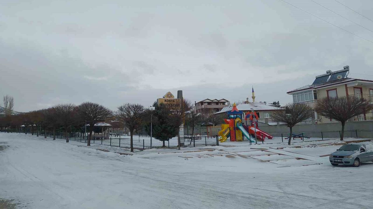 Konya'nın Yunak ilçesinde mevsimin ilk karı yağdı, ilçe beyaza büründü.