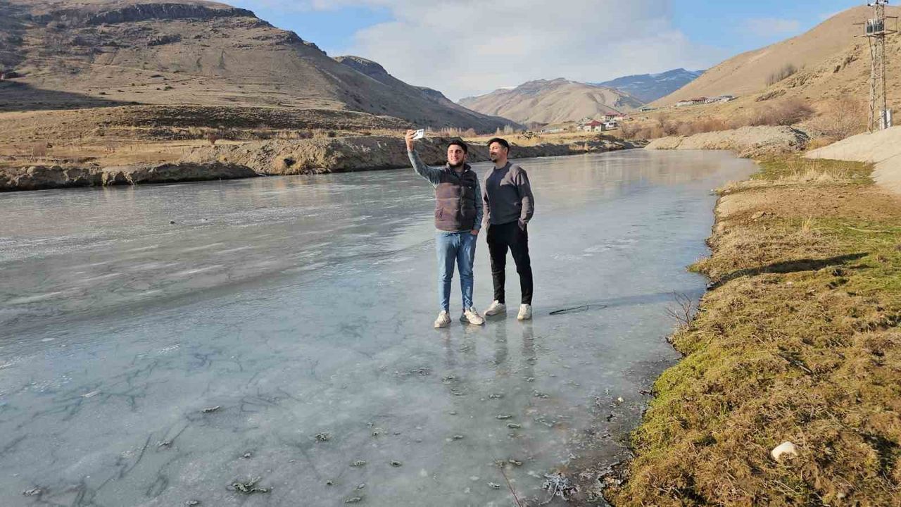 Van'ın Erciş ilçesinde etkili olan dondurucu soğuklar nedeniyle Zilan Çayı dondu.