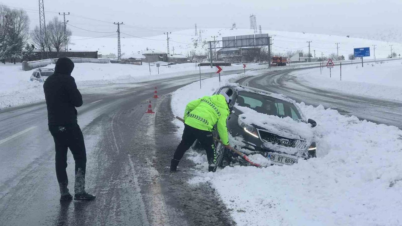 Bitlis'te yoğun kar yağışı sebebiyle karla kaplanan ve buzlanmanın etkili olduğu güzergâhlarda ilerlemekte zorlanan araçlar kara saplandı. İl Emniyet Müdürlüğü'ne bağlı Trafik Tescil Şube Müdürlüğü ekipleri, kara saplanan otomobillerin önündeki karları, kar kürekleri ile temizledikten sonra çıkarttı. Araç sürücüleri, kendilerine yardımcı olan polis ekiplerine teşekkür ederken yetkililer, sürücülerin kış şartlarına uygun lastik kullanmaları, hızlarını düşürmeleri ve trafik kurallarına uymaları konusunda uyarılarda bulundu.